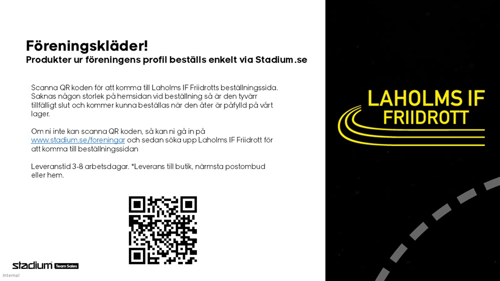 För mer info om detta klickar du på länken nedan så kommer du till sidan för föreningskläder på vår hemsida. Där du kan läsa mer om sambeställningen och länkar till webshopen och glöm nu inte att länka ditt eget Stadium medlemskap med klubben så får även Laholms IF bonus när du handlar på Stadium